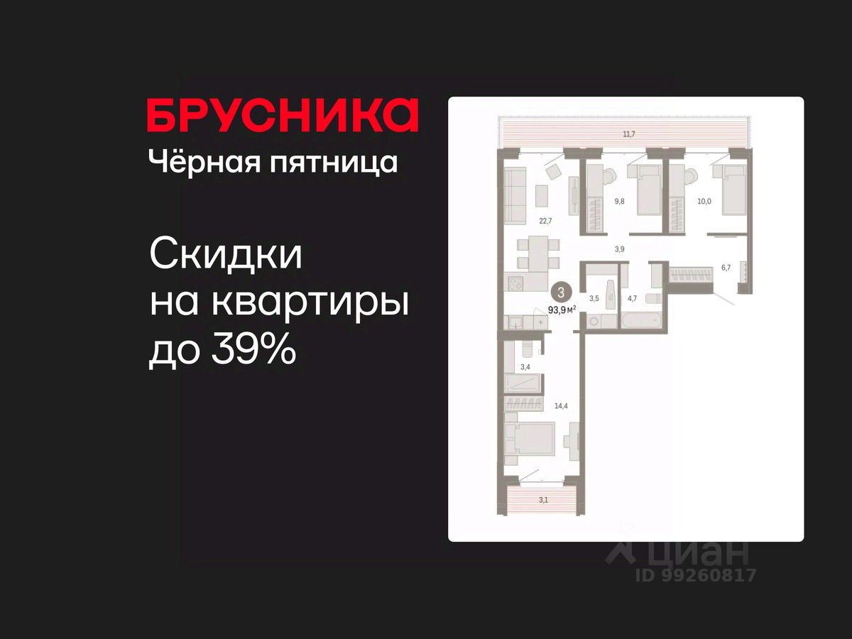 Просторная 3-комн. квартира с предчистовой отделкой в Кварталы "На Минской" на 6 этаже. Общая площадь: 93.91 кв.м., жилая: 34.2 кв.м., площадь просторной кухни-гостиной: 22.7 кв.м. Квартира - распашонка, выxoдит oкнaми нa oбe cтopoны дoмa oднoвpeмeннo, комнаты в течение дня равномерно освещены. В квартире два балкона, два совмещенных санузла. Терраса представляет собой роскошную зону отдыха для проведение вечеров в кругу семьи и друзей или организация вечеринок. Высота потолков 2.7 м.