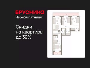 Квартира с кухней-гостиной и тремя спальнями в кварталах "На Минской". Особенности планировки: вид во двор, тёплая лоджия, разнесённые спальни, предчистовая отделка, мастер-спальня, постирочная, балкон.