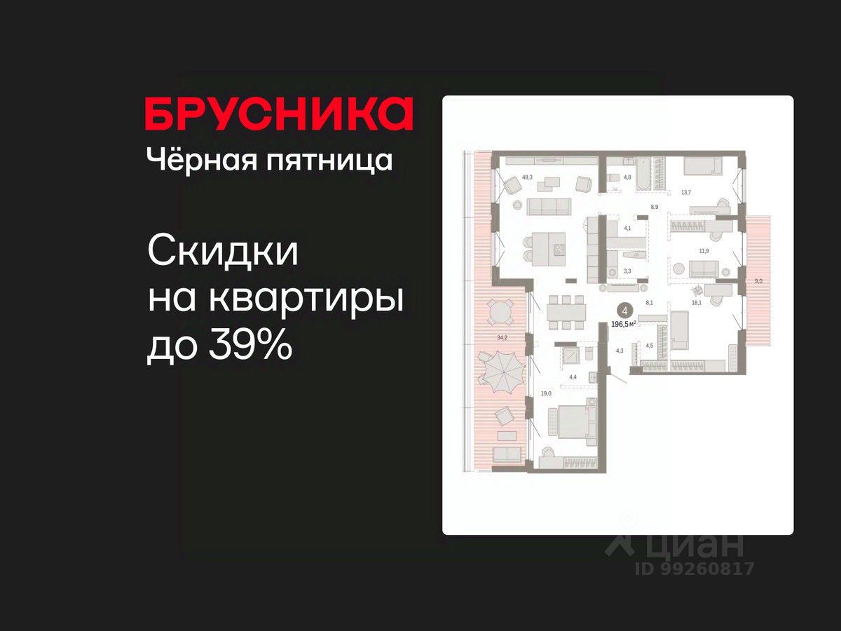Квартира с кухней-гостиной и четырьмя спальнями в кварталах "На Минской". Особенности планировки: гардеробная, окна в пол, рабочий кабинет, вид во двор, разнесённые спальни, предчистовая отделка, мастер-спальня, постирочная, балкон, терраса на крыше.