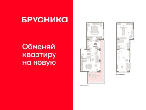 Двухуровневая квартира с кухней-гостиной и двумя спальнями в кварталах "На Минской". Особенности планировки: вид во двор, гардеробная, двухуровневая, мастер-спальня, окно в коридоре, предчистовая отделка, разнесённые спальни, терраса на крыше.