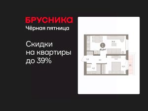 Квартира с кухней-гостиной и одной спальней в кварталах "На Минской". Особенности планировки: предчистовая отделка, терраса на крыше.