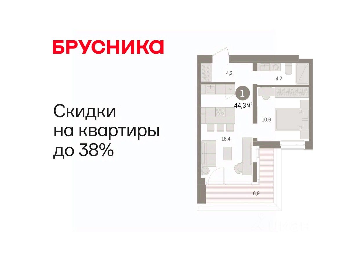 Квартира с кухней-гостиной и одной спальней в кварталах "На Минской". Особенности планировки: лоджия, панорамное остекление, предчистовая отделка.