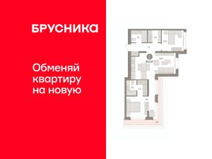 Квартира с кухней-гостиной и двумя спальнями в кварталах "На Минской". Особенности планировки: балкон, гардеробная, мастер-спальня, постирочная, предчистовая отделка, разнесённые спальни.