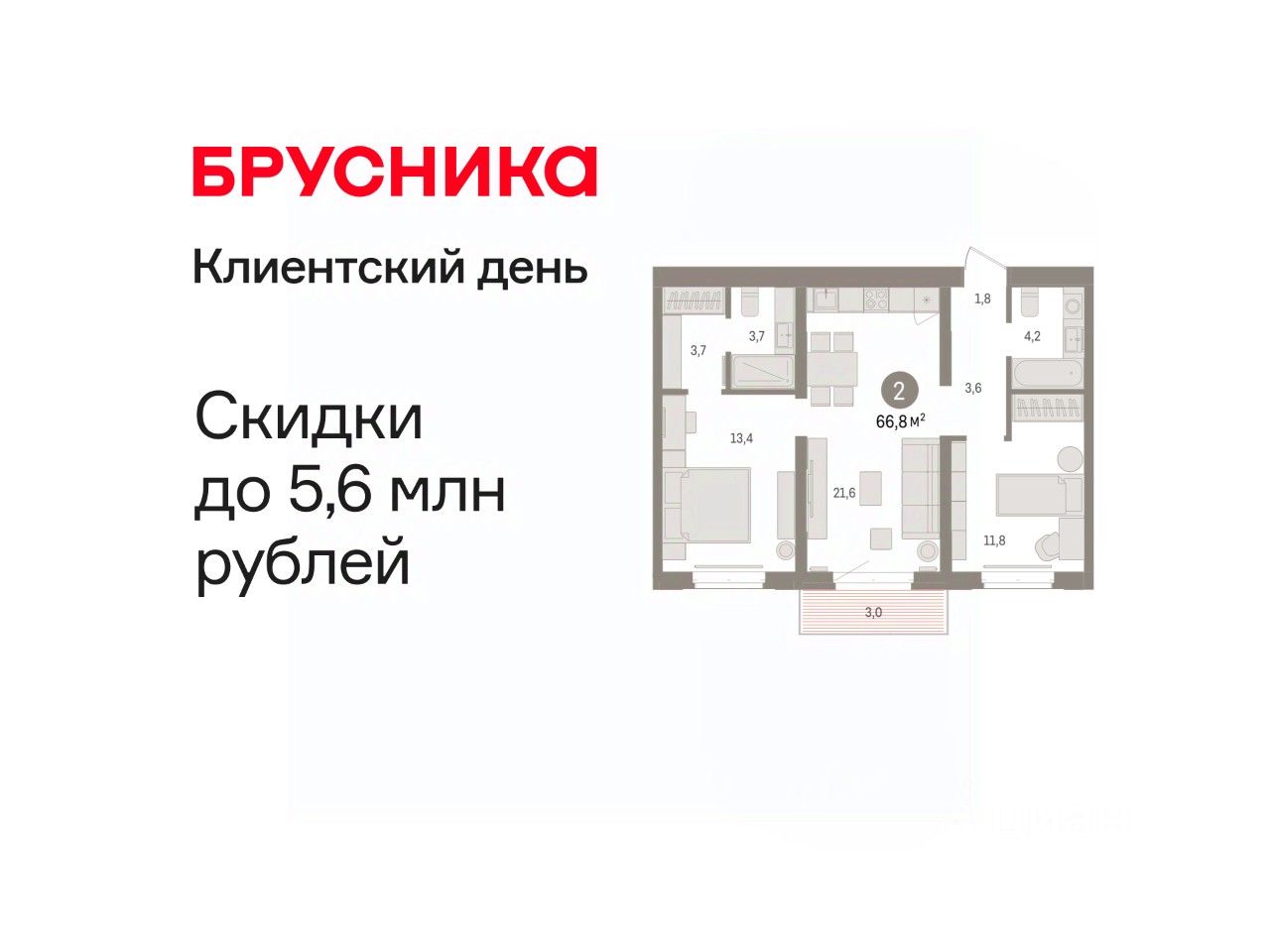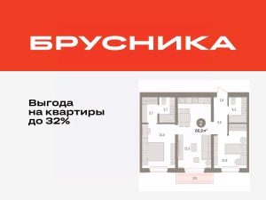 Просторная 2-комн. квартира с предчистовой отделкой в Кварталы "На Минской" на 6 этаже. Общая площадь: 66.79 кв.м., жилая: 25.2 кв.м., площадь просторной кухни-гостиной: 21.6 кв.м. Комнаты изолированные, все окна выходят на одну сторону. В квартире один балкон, два совмещенных санузла. Высота потолков 2.7 м.