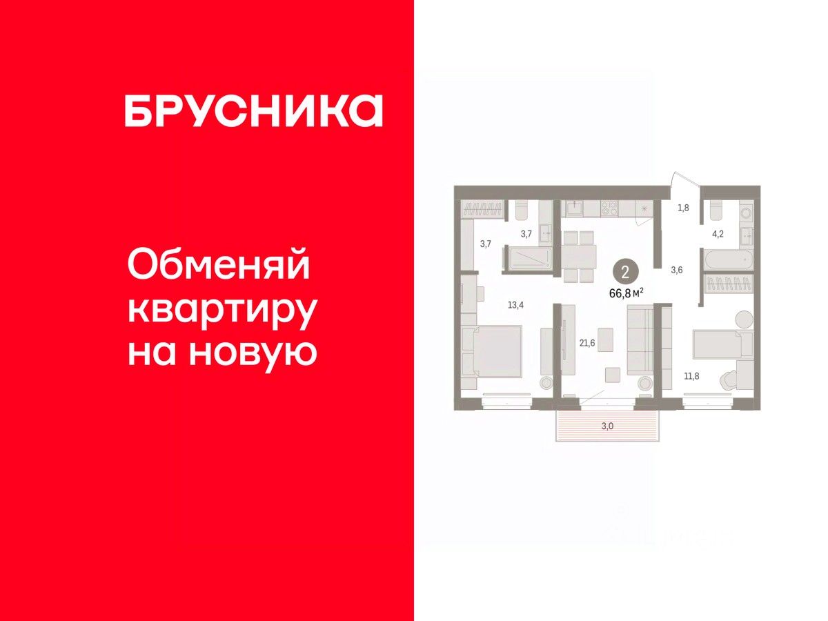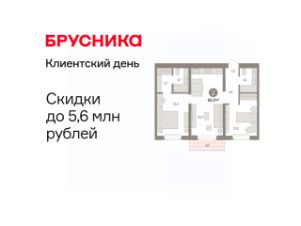 Квартира с кухней-гостиной и двумя спальнями в кварталах "На Минской". Особенности планировки: балкон, гардеробная, мастер-спальня, предчистовая отделка, разнесённые спальни.