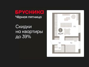 1-комн. квартира от застройщика с предчистовой отделкой в Кварталы "На Минской" на 3 этаже. Общая площадь: 41.07 кв.м., жилая: 9.1 кв.м., площадь просторной кухни-гостиной: 25.1 кв.м. Все окна выходят на одну сторону. В квартире один совмещенный санузел. Высота потолков 2.7 м.