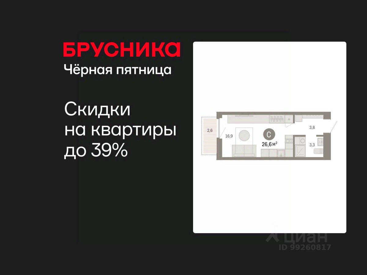 Студия в жилом районе "Зарека". Особенности планировки: предчистовая отделка, балкон.
