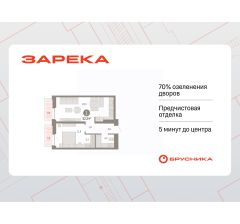 Квартира с кухней-гостиной и одной спальней в жилом районе "Зарека". Особенности планировки: гардеробная, предчистовая отделка, балкон.
