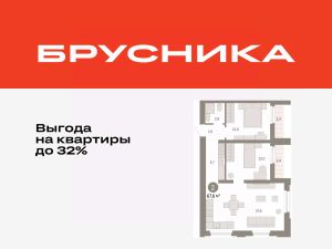 Квартира с кухней-гостиной и двумя спальнями в жилом районе "Зарека". Особенности планировки: лоджия, предчистовая отделка.