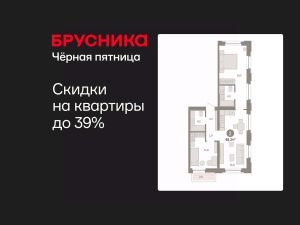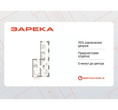 Квартира с кухней-гостиной и двумя спальнями в жилом районе "Зарека". Особенности планировки: разнесённые спальни, предчистовая отделка, мастер-спальня, балкон.