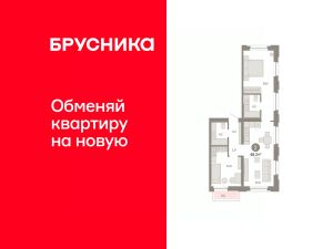 Квартира с кухней-гостиной и двумя спальнями в жилом районе "Зарека". Особенности планировки: балкон, предчистовая отделка, разнесённые спальни.