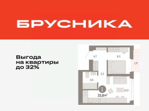 Однокомнатная квартира от застройщика с предчистовой отделкой в ЖК "Зарека" на 16 этаже. Общая площадь: 33.77 кв.м., жилая: 8.3 кв.м., площадь просторной кухни-гостиной: 13 кв.м. Все окна выходят на одну сторону. В квартире один балкон, один совмещенный санузел. Высота потолков 2.7 м.