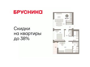 Двухкомнатная квартира с предчистовой отделкой в ЖК "Республики 205" на 9 этаже. Общая площадь: 66.78 кв.м. Высота потолков 2.7 м.