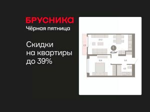 Квартира с кухней-гостиной и одной спальней в Октябрьском на Туре. Особенности планировки: предчистовая отделка, балкон.