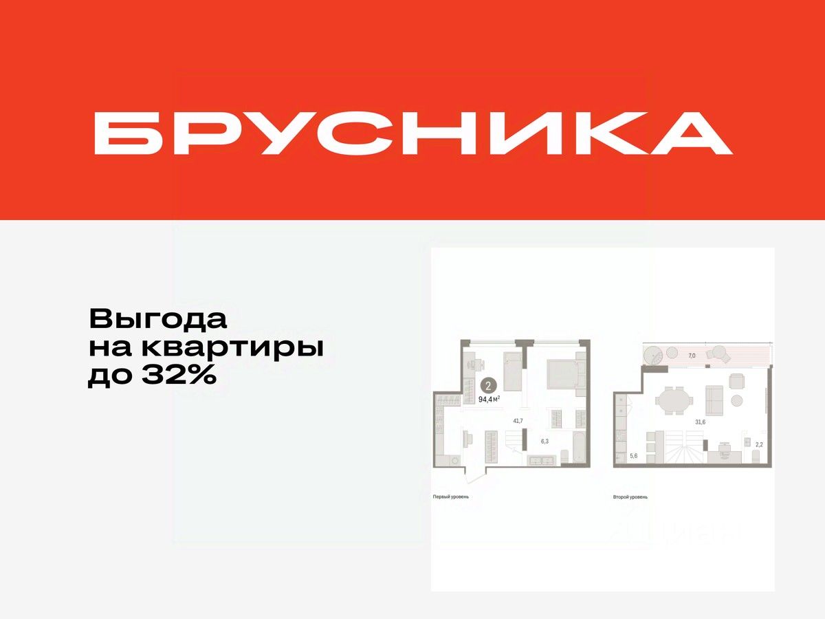 Квартира с кухней-гостиной и двумя спальнями в жилом районе "Речной порт". Особенности планировки: без отделки, двухуровневая, панорамное остекление, свободная планировка, терраса на крыше.