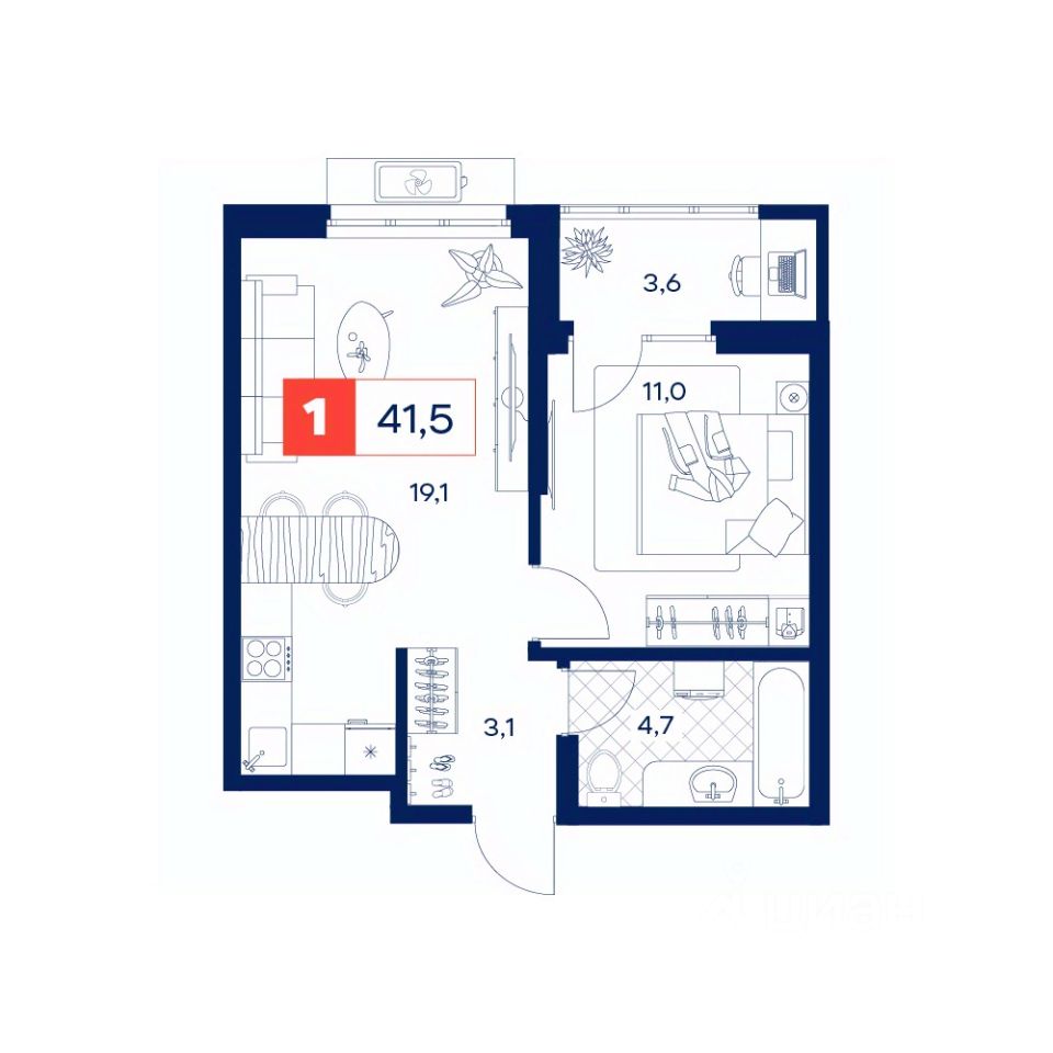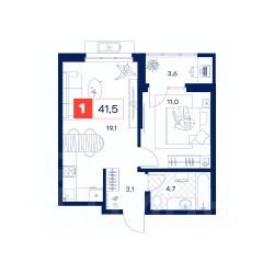 Продается 1- комнатная квартира площадью 41,5 кв.м на 17 этаже в клубном доме с сервисами премиального уровня от девелопера Творчество.