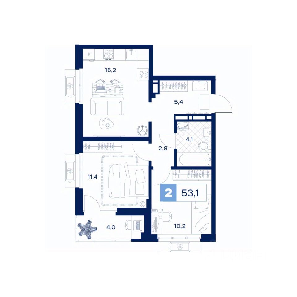 Продается 2- комнатная квартира площадью 53,1 кв.м на 21 этаже в клубном доме с сервисами премиального уровня от девелопера Творчество.