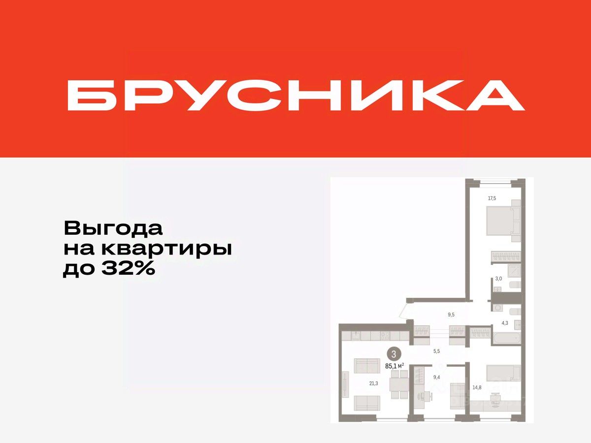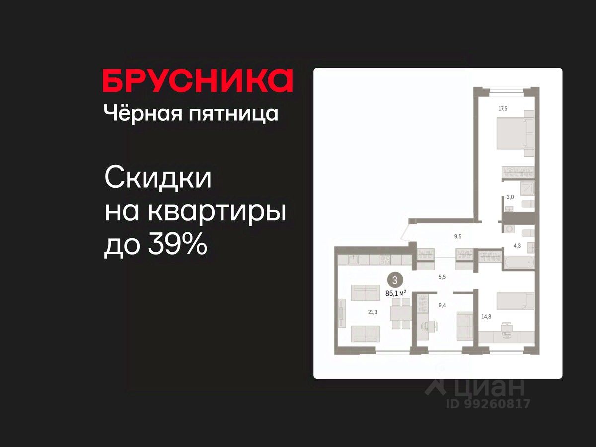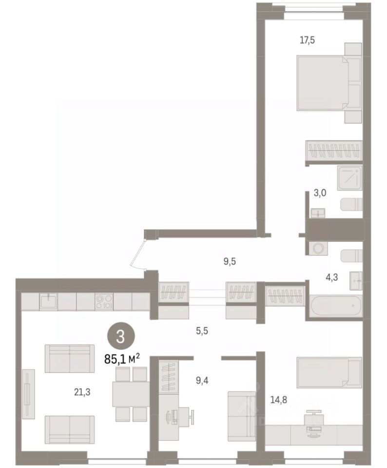 Квартира с кухней-гостиной и тремя спальнями в жилом районе "Речной порт". Особенности планировки: вид во двор, разнесённые спальни, предчистовая отделка, мастер-спальня.