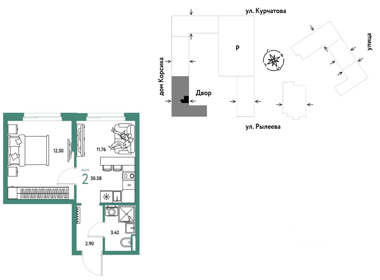 Продается 2комнатная квартира на 16 этаже от застройщика Страна Девелопмент. Площадь квартиры 30,58 кв. м.