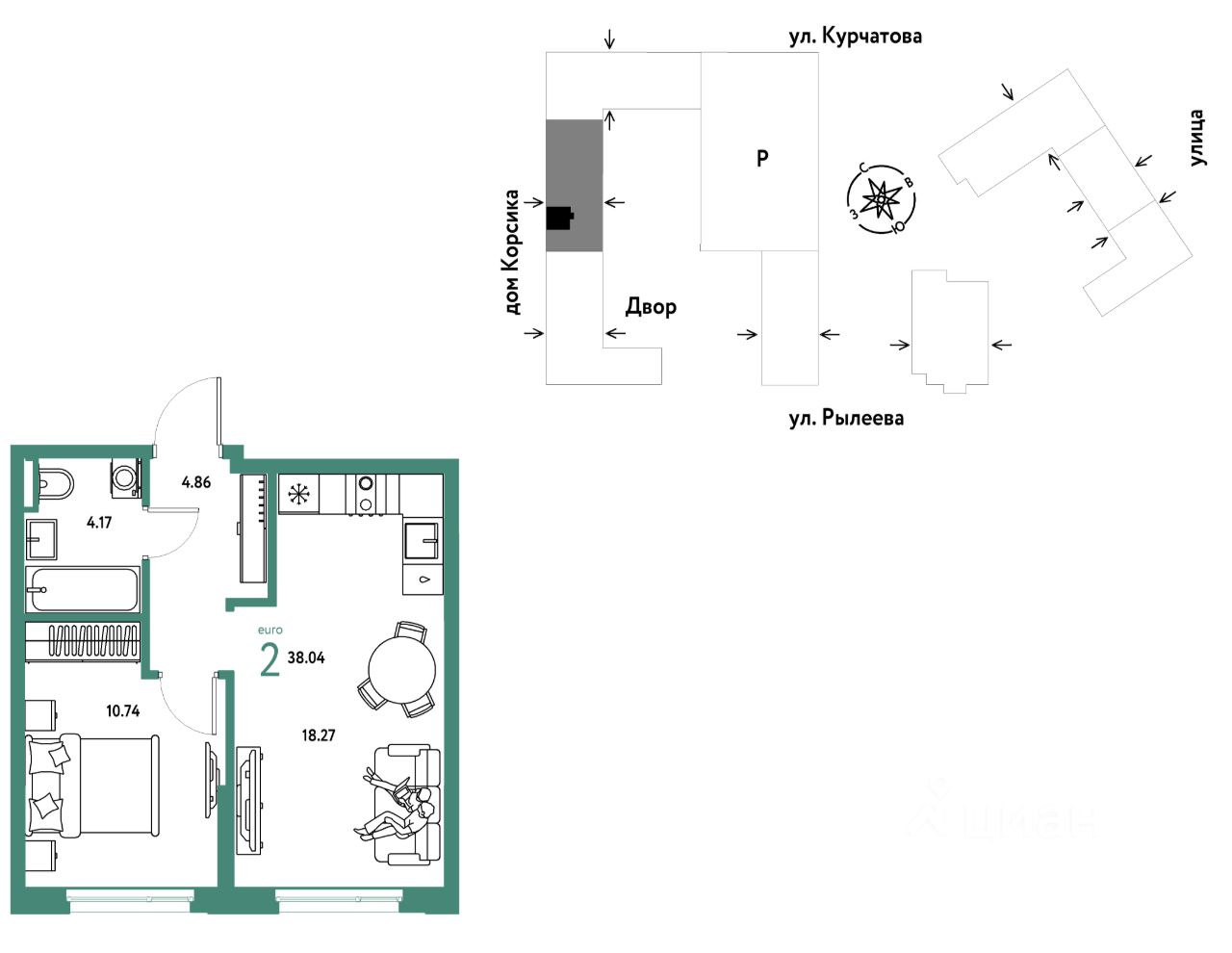 Продается 2комнатная квартира на 6 этаже от застройщика Страна Девелопмент. Площадь квартиры 38,04 кв. м.