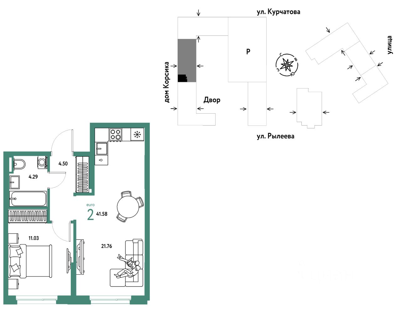 Продается 2комнатная квартира на 8 этаже от застройщика Страна Девелопмент. Площадь квартиры 41,58 кв. м.