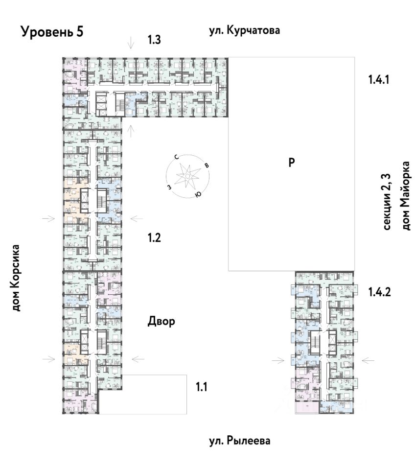 Развитое жилое пространство — закрытые дворы-сады, свои набережная и бульвар, торговая галерея на 1-м этаже, рядом детсады, школы и поликлиника.