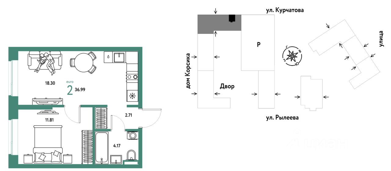 Продается 2комнатная квартира на 8 этаже от застройщика Страна Девелопмент. Площадь квартиры 36,99 кв. м.