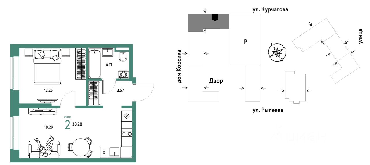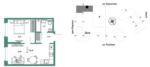 Продается 2комнатная квартира на 12 этаже от застройщика Страна Девелопмент. Площадь квартиры 38,28 кв. м.
