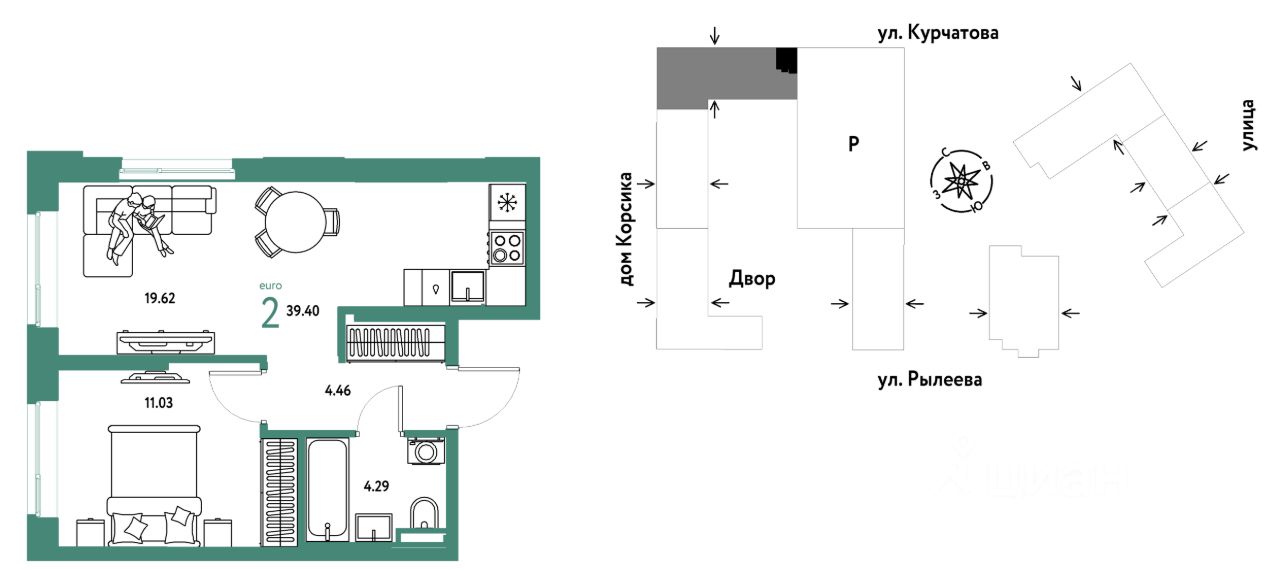 Продается 2комнатная квартира на 12 этаже от застройщика Страна Девелопмент. Площадь квартиры 39,4 кв. м.