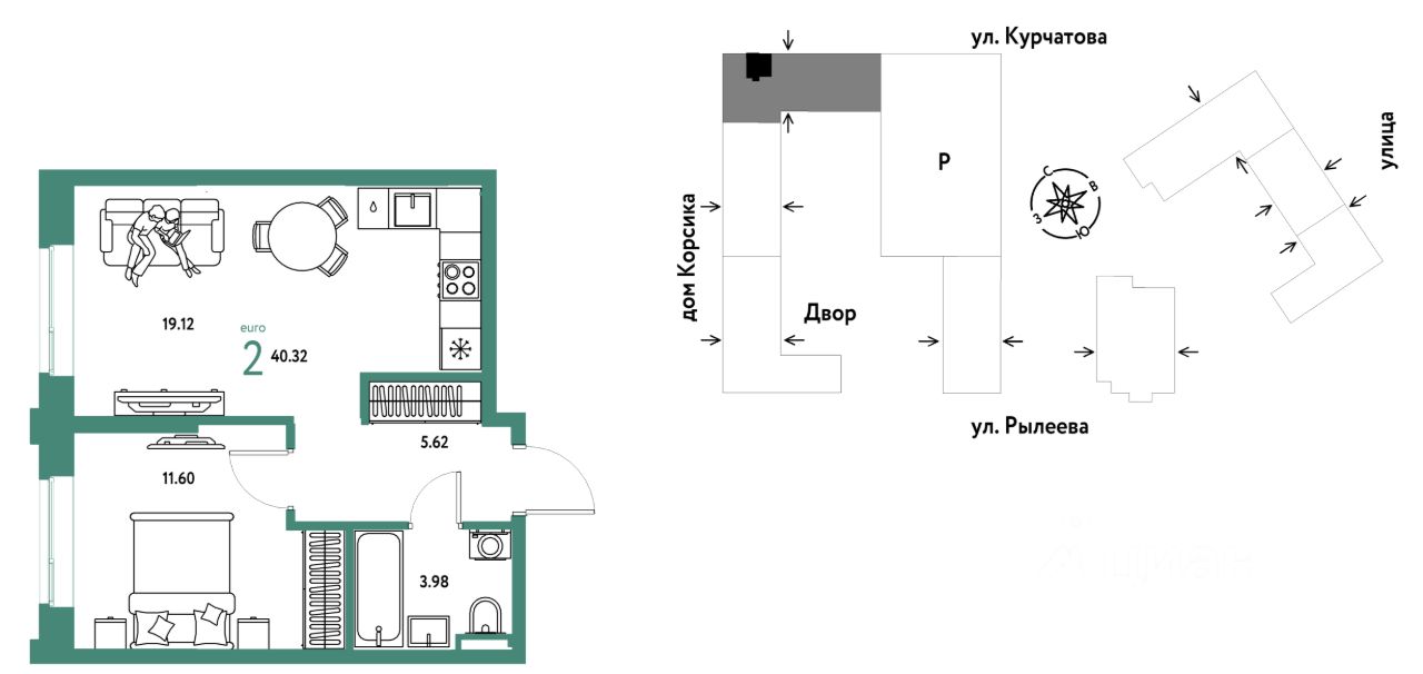 Продается 2комнатная квартира на 14 этаже от застройщика Страна Девелопмент. Площадь квартиры 40,32 кв. м.