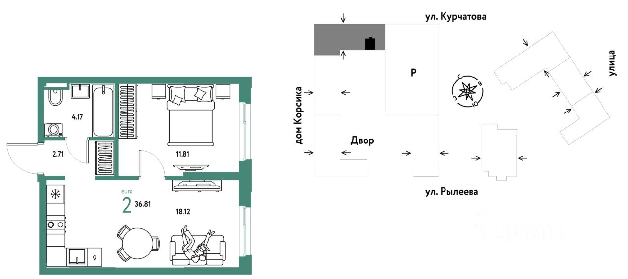 Продается 2комнатная квартира на 14 этаже от застройщика Страна Девелопмент. Площадь квартиры 36,81 кв. м.