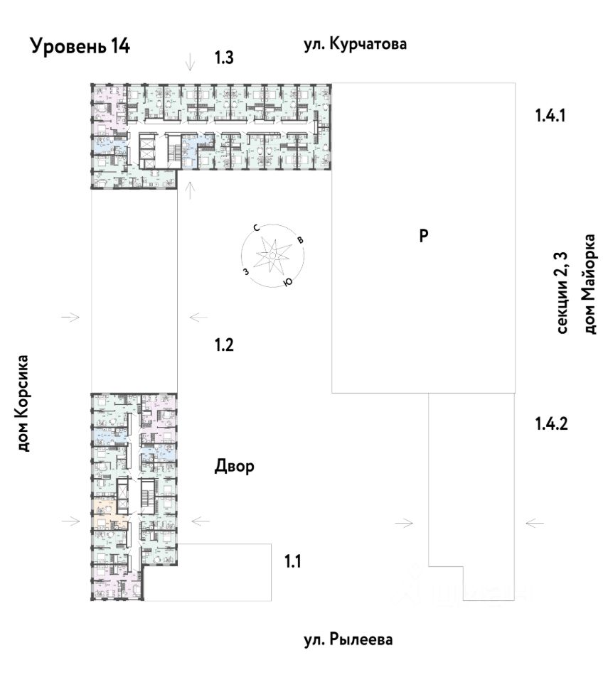 Развитое жилое пространство — закрытые дворы-сады, свои набережная и бульвар, торговая галерея на 1-м этаже, рядом детсады, школы и поликлиника.