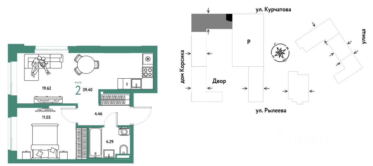 Продается 2комнатная квартира на 16 этаже от застройщика Страна Девелопмент. Площадь квартиры 39,4 кв. м.