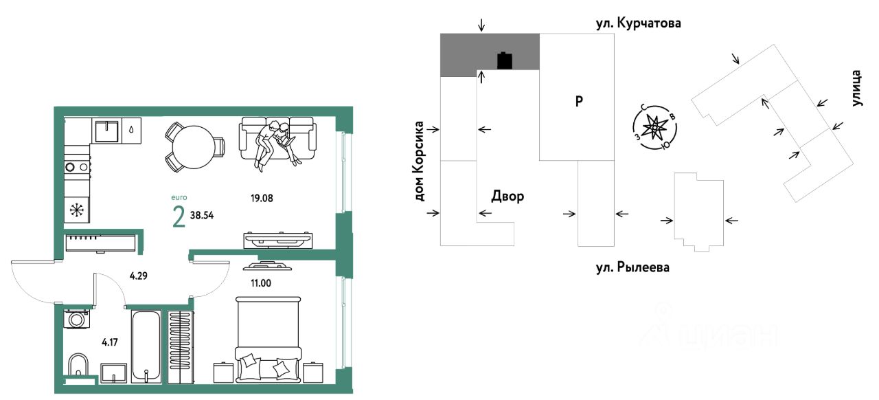 Продается 2комнатная квартира на 16 этаже от застройщика Страна Девелопмент. Площадь квартиры 38,54 кв. м.