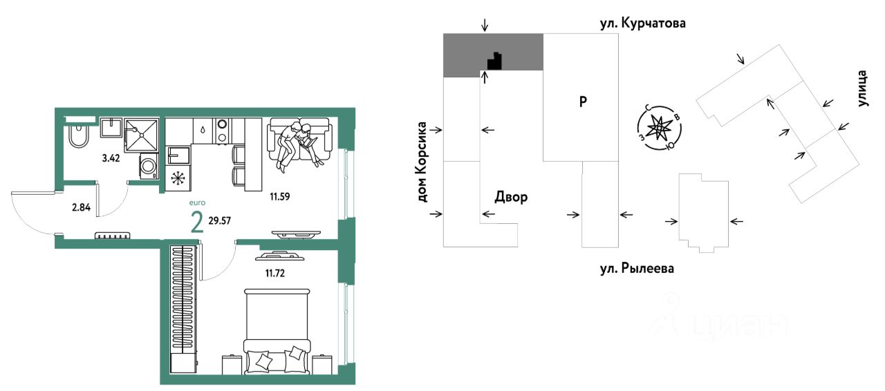 Продается 2комнатная квартира на 18 этаже от застройщика Страна Девелопмент. Площадь квартиры 29,57 кв. м.