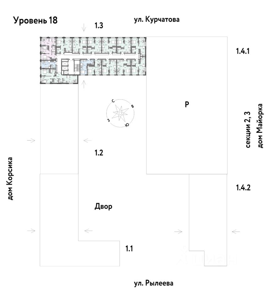 Развитое жилое пространство — закрытые дворы-сады, свои набережная и бульвар, торговая галерея на 1-м этаже, рядом детсады, школы и поликлиника.