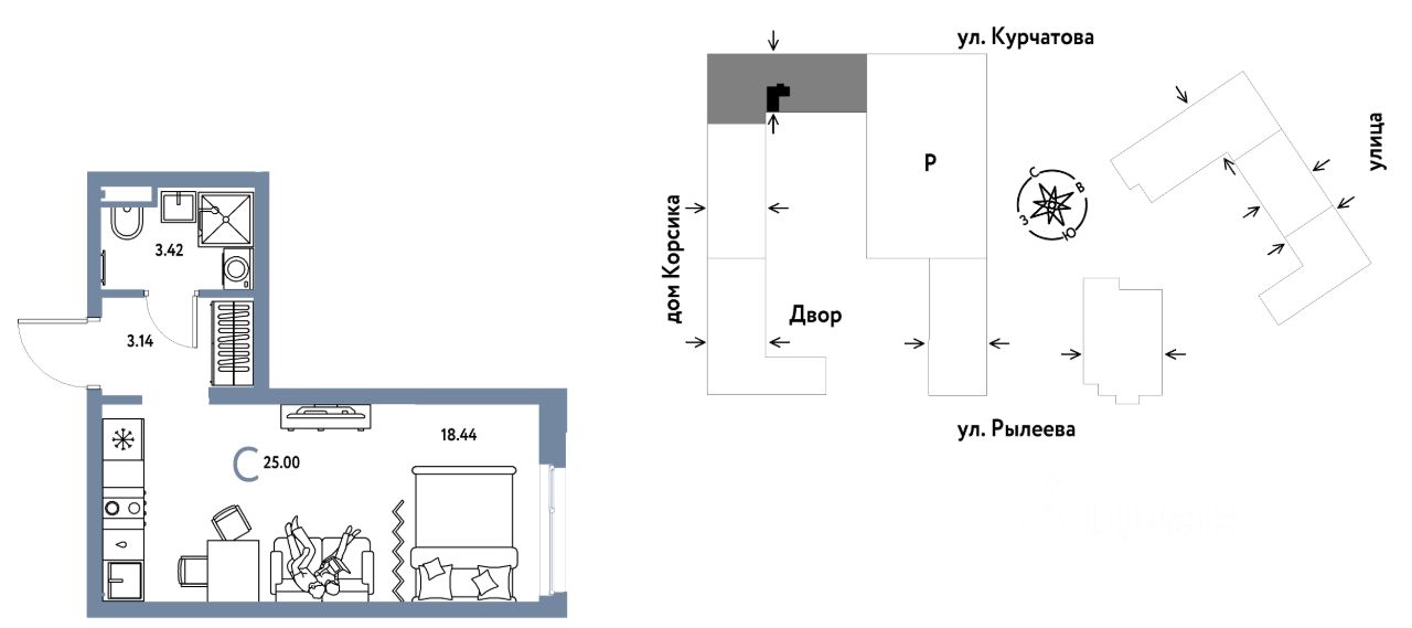Продается 1комнатная квартира на 21 этаже от застройщика Страна Девелопмент. Площадь квартиры 25 кв. м.