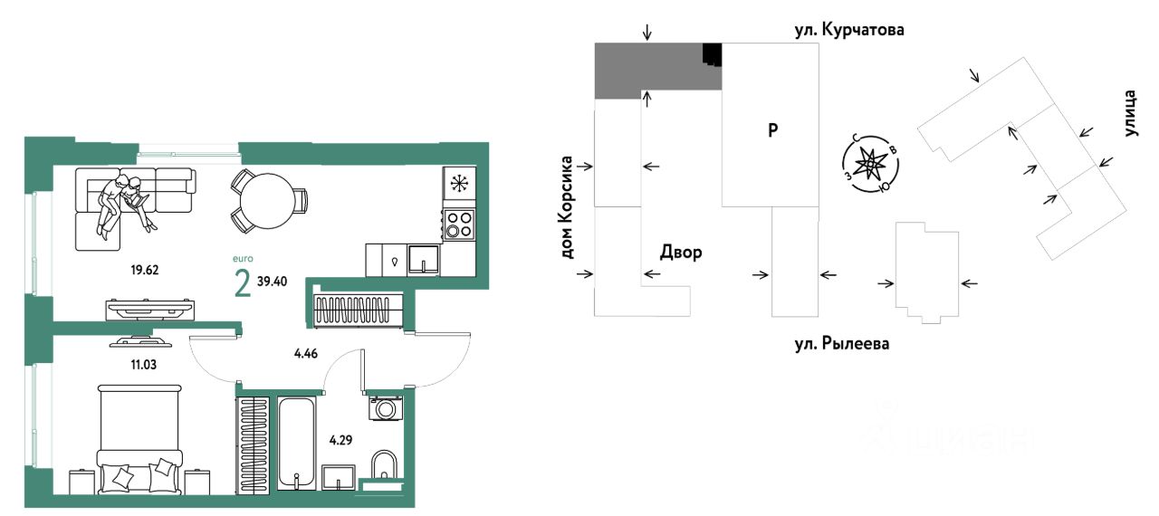 Продается 2комнатная квартира на 22 этаже от застройщика Страна Девелопмент. Площадь квартиры 39,4 кв. м.