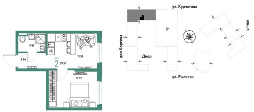 Продается 2комнатная квартира на 22 этаже от застройщика Страна Девелопмент. Площадь квартиры 29,57 кв. м.