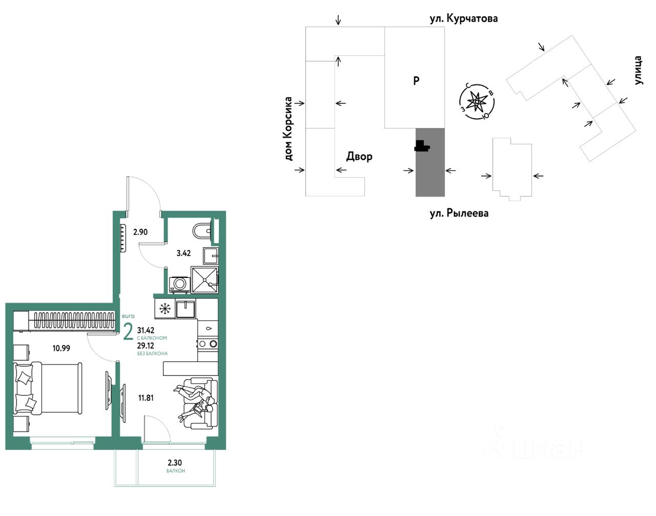 Продается 2комнатная квартира на 7 этаже от застройщика Страна Девелопмент. Площадь квартиры 31,42 кв. м.