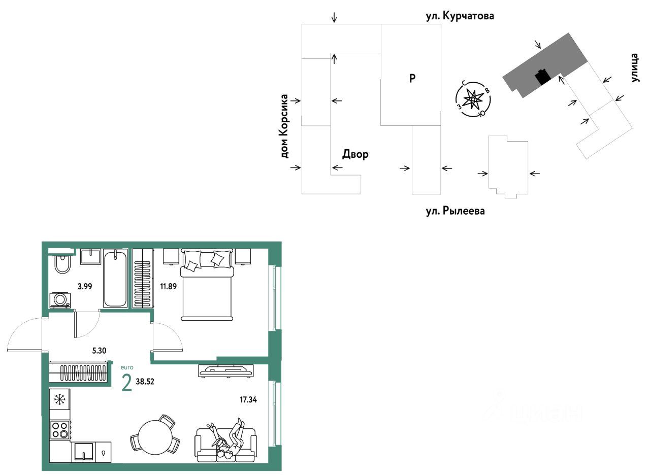 Продается 2комнатная квартира на 2 этаже от застройщика Страна Девелопмент. Площадь квартиры 38,52 кв. м.