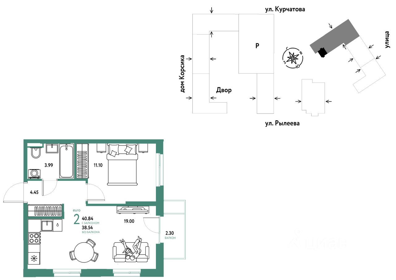 Продается 2комнатная квартира на 3 этаже от застройщика Страна Девелопмент. Площадь квартиры 40,84 кв. м.