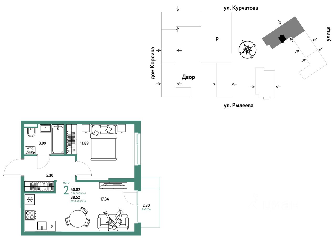 Продается 2комнатная квартира на 7 этаже от застройщика Страна Девелопмент. Площадь квартиры 40,82 кв. м.