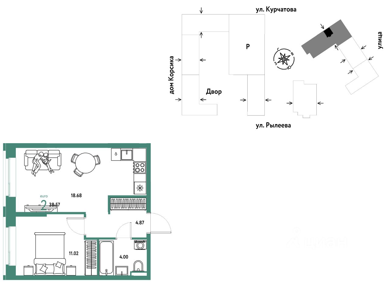 Продается 2комнатная квартира на 7 этаже от застройщика Страна Девелопмент. Площадь квартиры 38,57 кв. м.