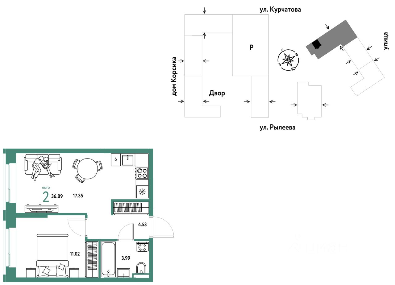 Продается 2комнатная квартира на 8 этаже от застройщика Страна Девелопмент. Площадь квартиры 36,89 кв. м.