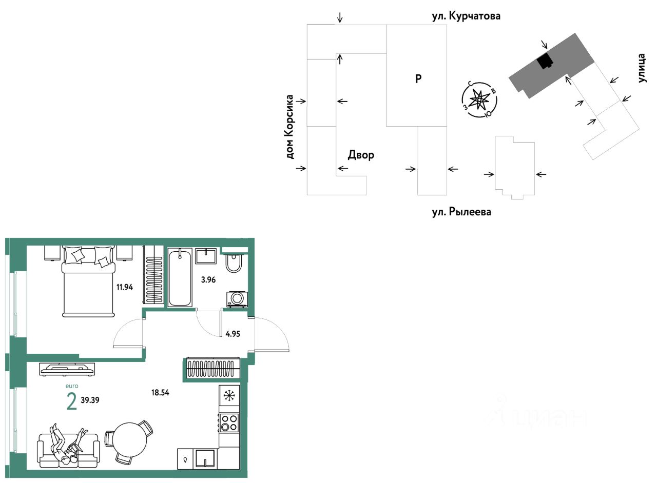 Продается 2комнатная квартира на 9 этаже от застройщика Страна Девелопмент. Площадь квартиры 39,39 кв. м.