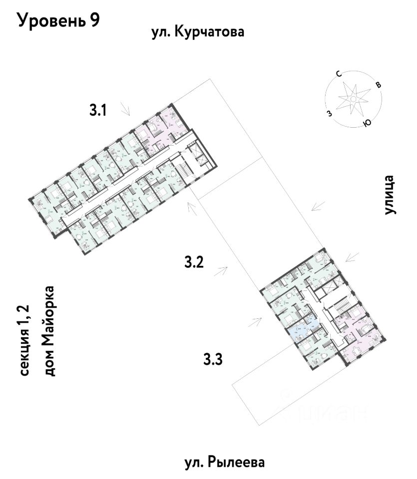Развитое жилое пространство — закрытые дворы-сады, свои набережная и бульвар, торговая галерея на 1-м этаже, рядом детсады, школы и поликлиника.