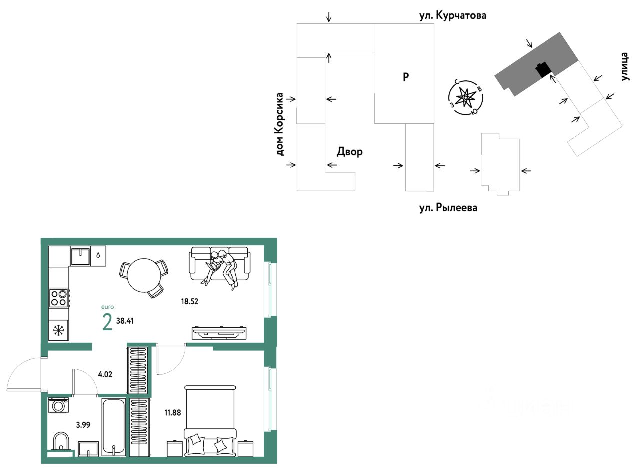 Продается 2комнатная квартира на 10 этаже от застройщика Страна Девелопмент. Площадь квартиры 38,41 кв. м.
