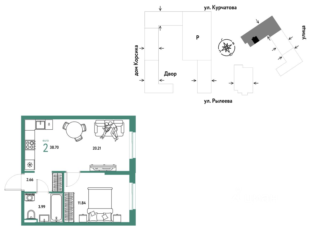 Продается 2комнатная квартира на 10 этаже от застройщика Страна Девелопмент. Площадь квартиры 38,7 кв. м.