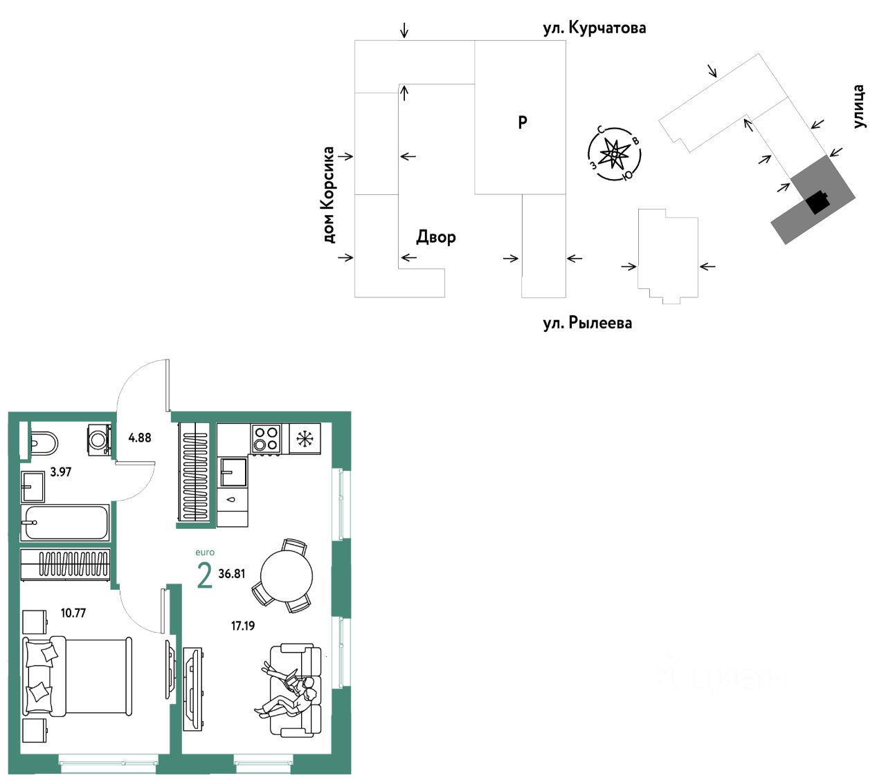 Продается 2комнатная квартира на 2 этаже от застройщика Страна Девелопмент. Площадь квартиры 36,81 кв. м.
